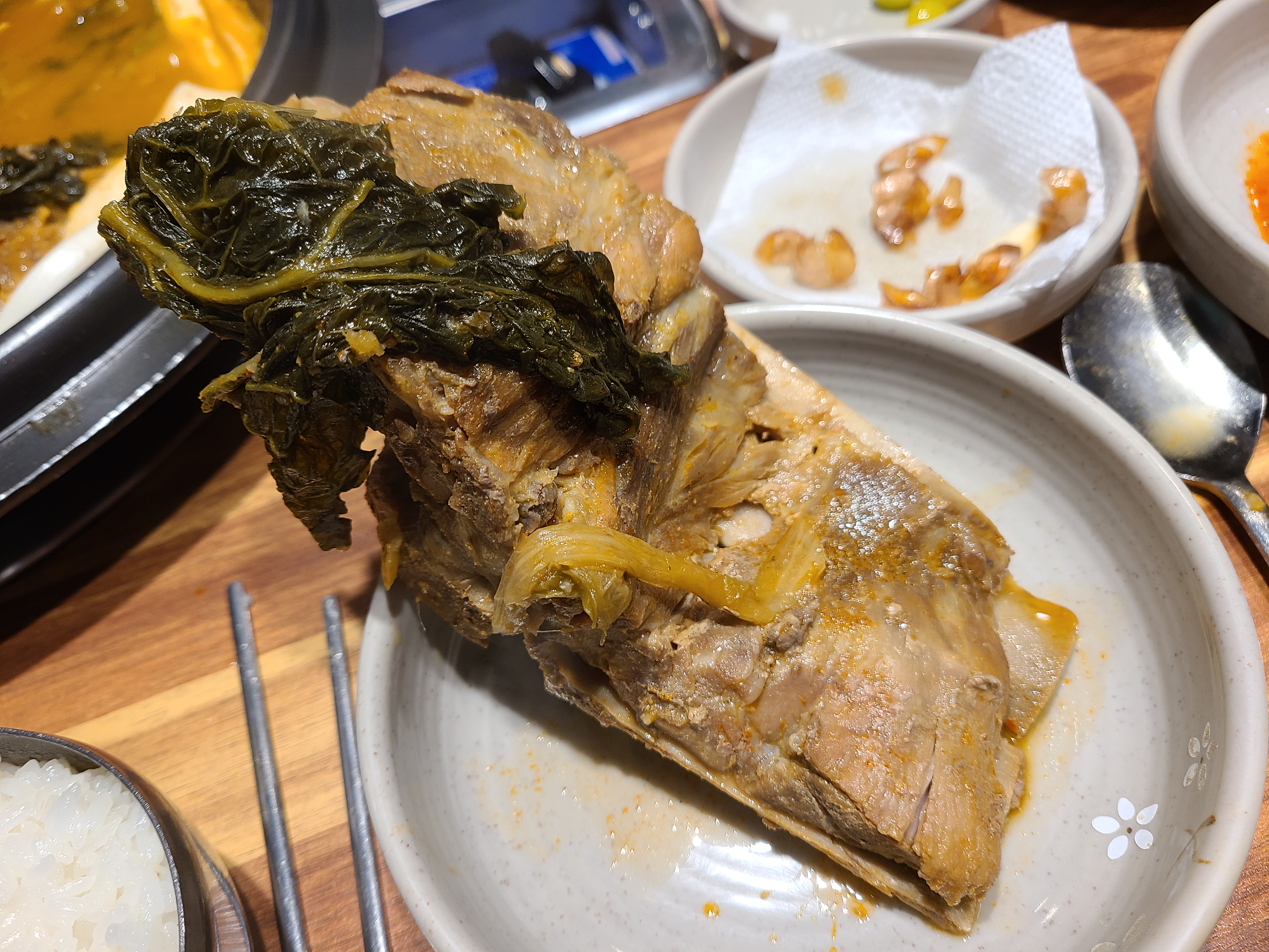 5. 감자탕에 들어있는 고기의 살코기가 정말 많습니다. 2명이서 소자시켜도 충분히 잘 먹었다라고 느껴져요. 사진보면서 글 쓰는데 침고입니다. ㅋㅋ 고기 엄청 부드럽고 소스랑 찍어먹으면 그게 그렇게 맛있습니다. 금강앞에도 감자탕집이 있는데 거기는 아이들이 막 뛰어다니고 그래서 많이 씨끄러워서 식사시간 피해서 갔었거든요. 여기는 조용해서 맛을 음미하면서 먹을 수 있었습니다!!! 저에겐 조용한게 무척 중요합니다..