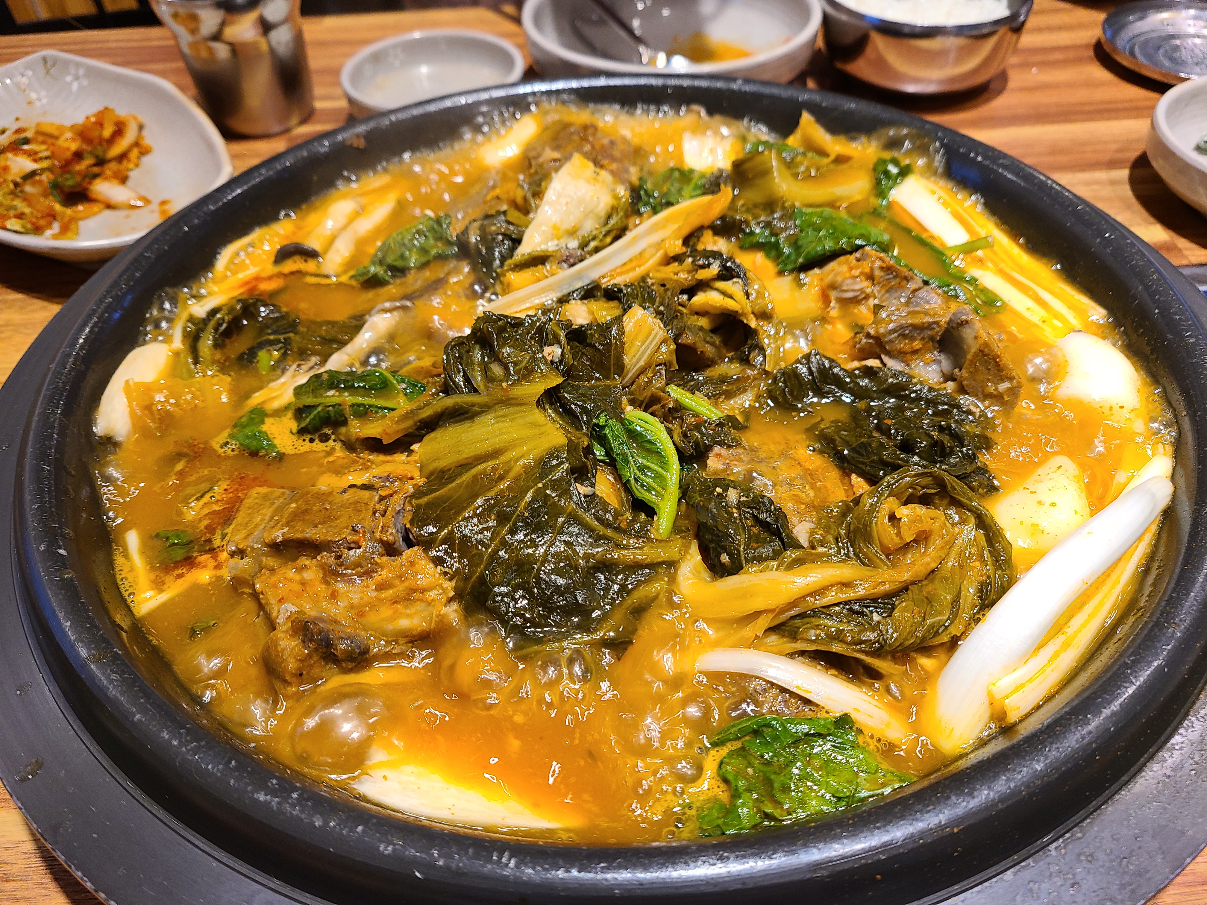 4. 시래기 감자탕 소자를 시킨게 나왔습니다. 야채, 버섯, 시래기, 감자, 제일 중요한 고기!!!! 큰거 4덩이가 들어가 있었습니다!!!^^
