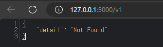 웹브라우저 주소창에서 'http://127.0.0.1:5000/v1' 를 입력하고 아래와 같이 출력되면 설정 성공입니다.