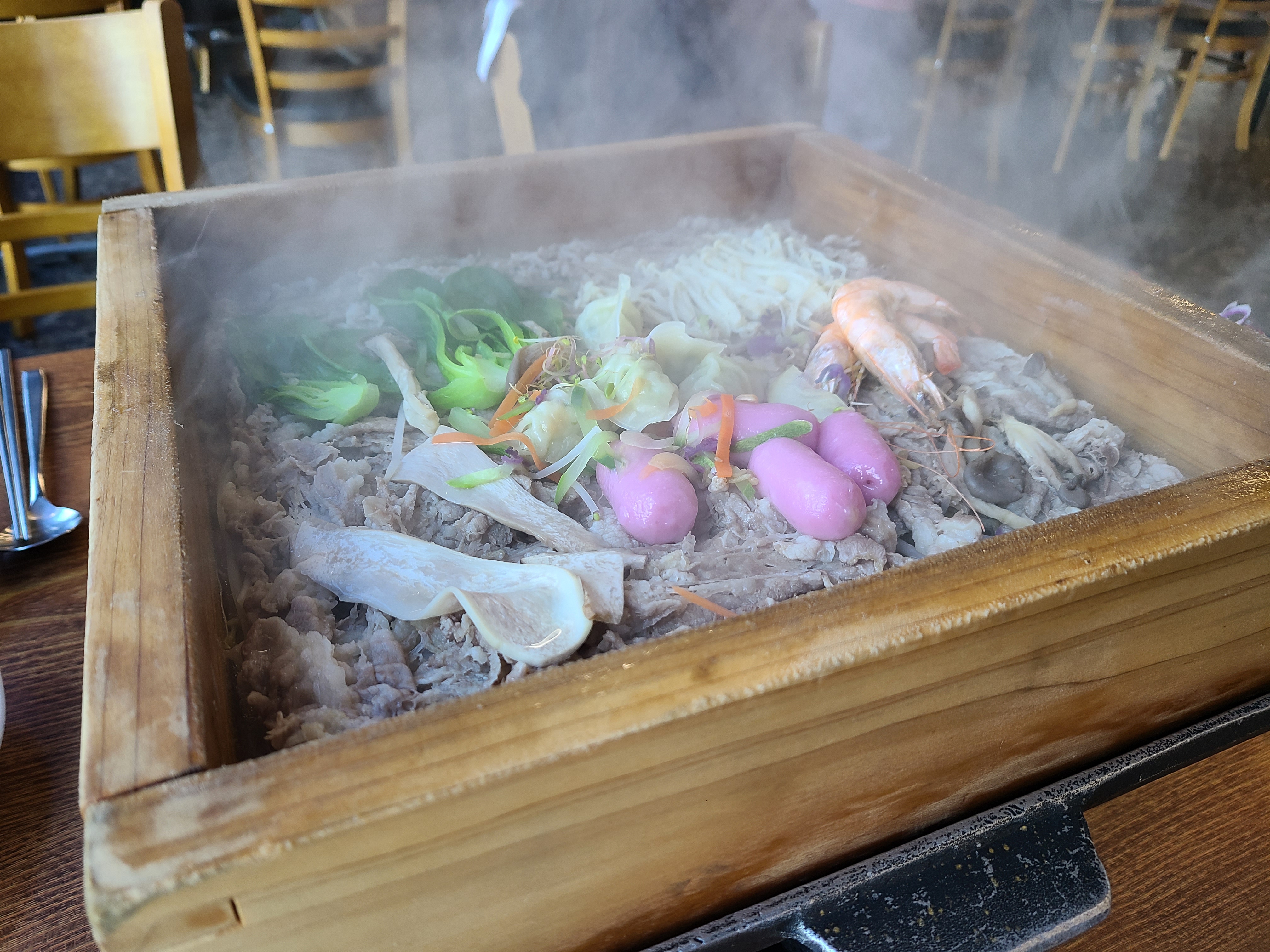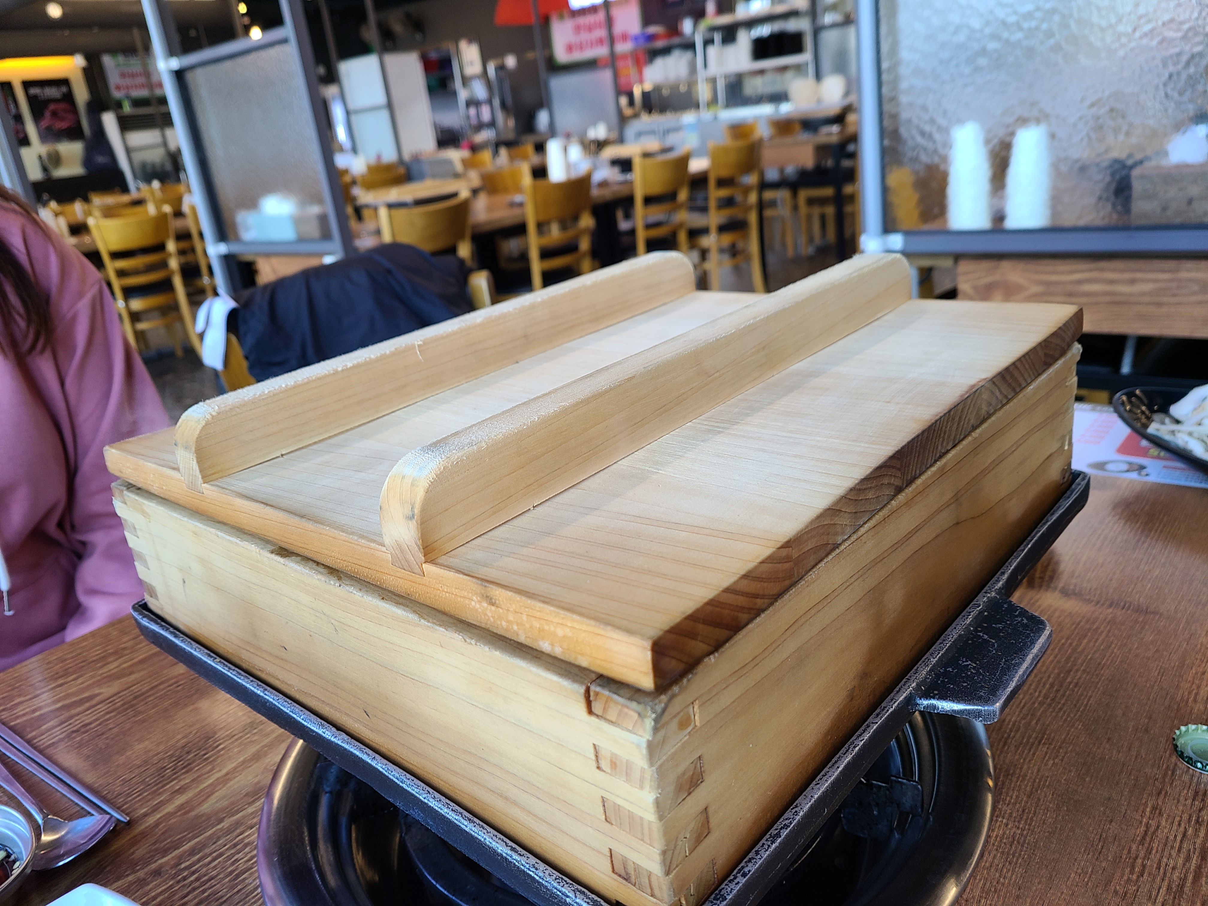 5. 점심특선으로 2인분 주문하니 종업원님이 편백찜을 가져다 놓아주셨어요. 한 15분 정도 찌면 맛있게 냠냠하면 됩니다. 타이머를 걸어두고 가시므로 우리는 아무것도 안해도 되서 편했어요.