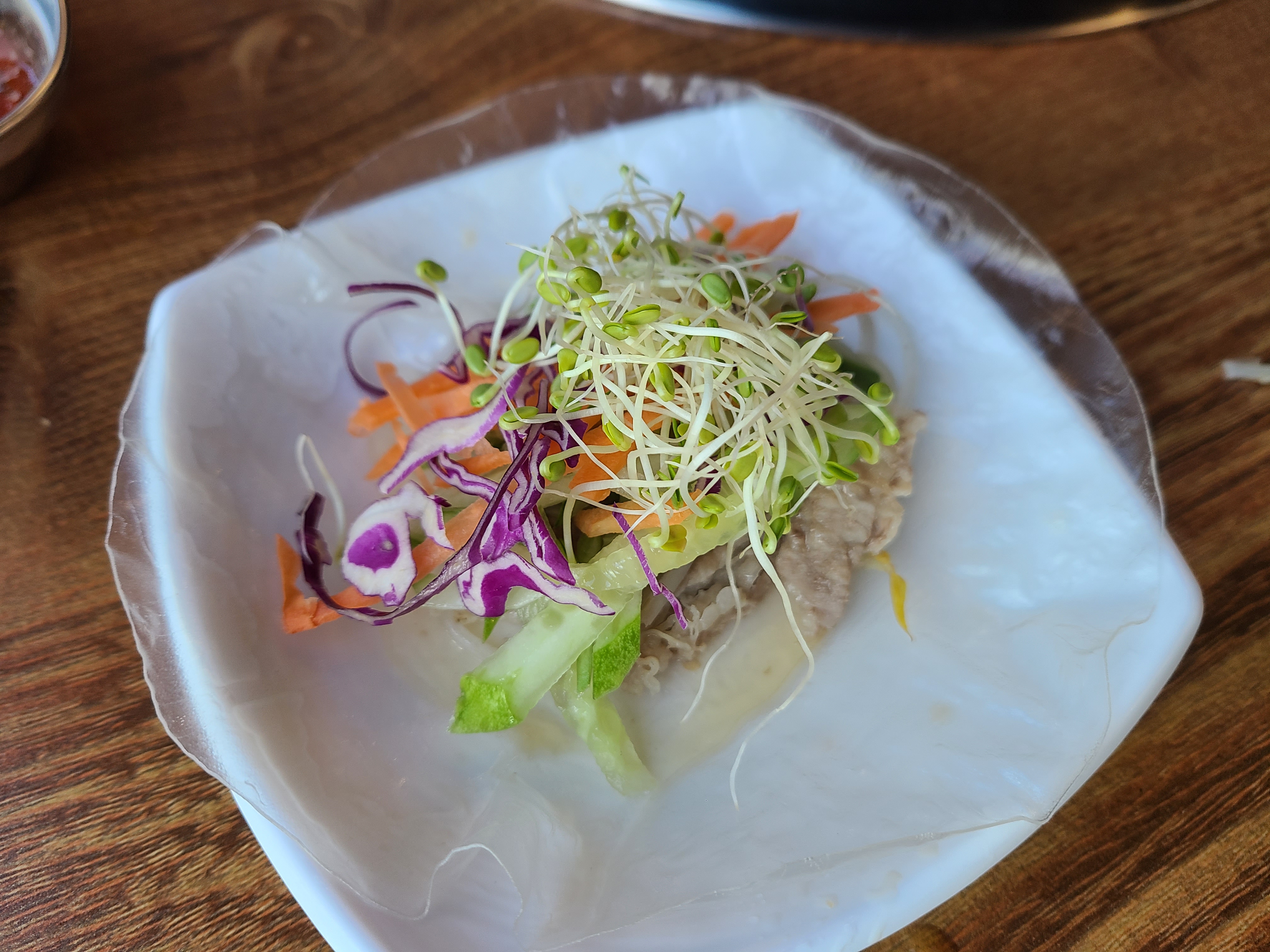 7. 월남쌈 재료를 셀프바에서 가져와서 편백찜이랑 같이 먹었는데 싸는 재미와 먹는재미 둘다 느낄수 있었어요. 야채는 진짜 오늘 많이 먹는듯하네요 ㅎㅎ