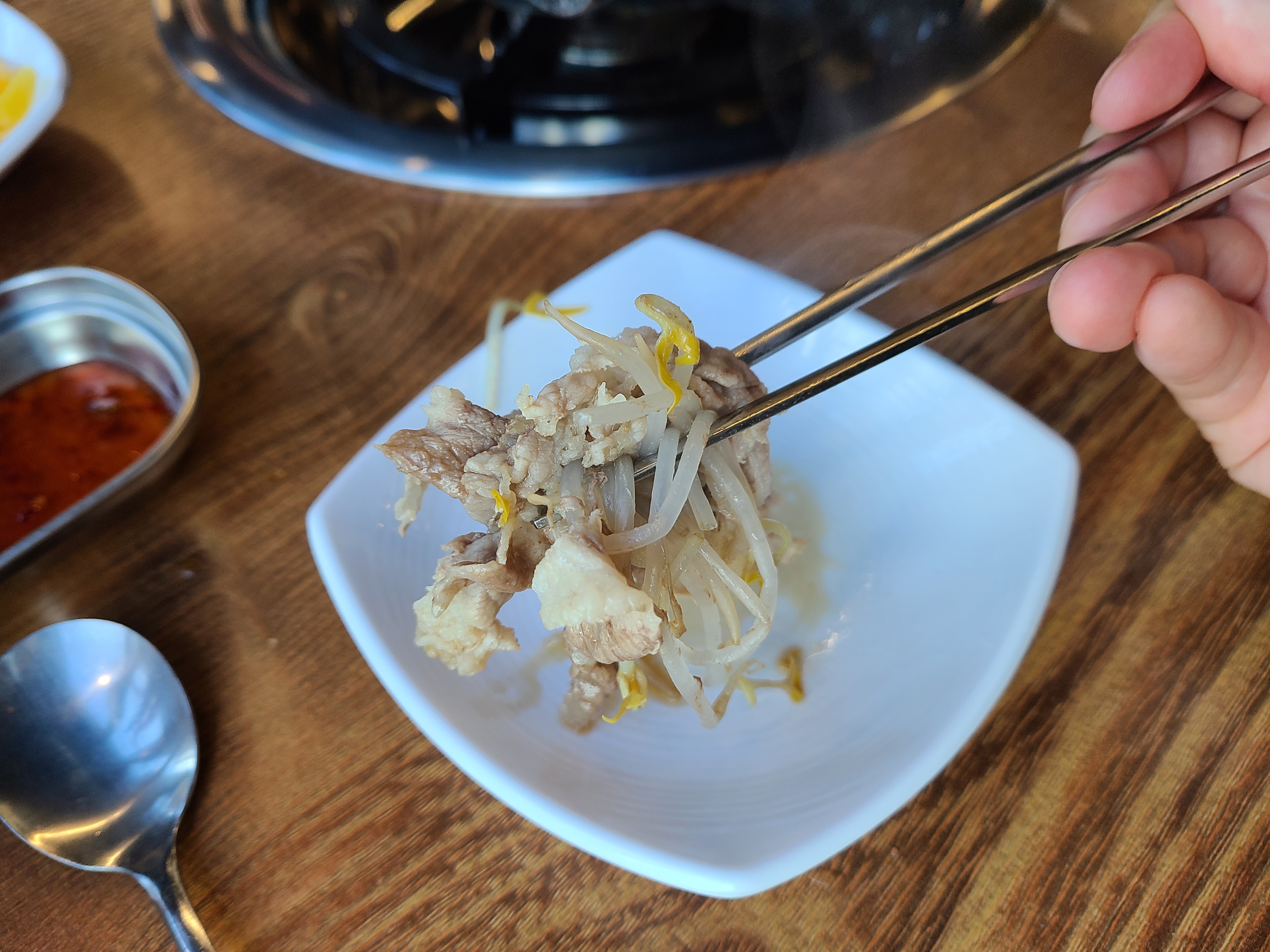 9. 매운거 잘 못먹는데도 맛있으니 진짜 맛있는거죠 ㅋㅋ 안매운쪽에 있는 야채를 매운쪽으로 옮겨서 먹었어요.