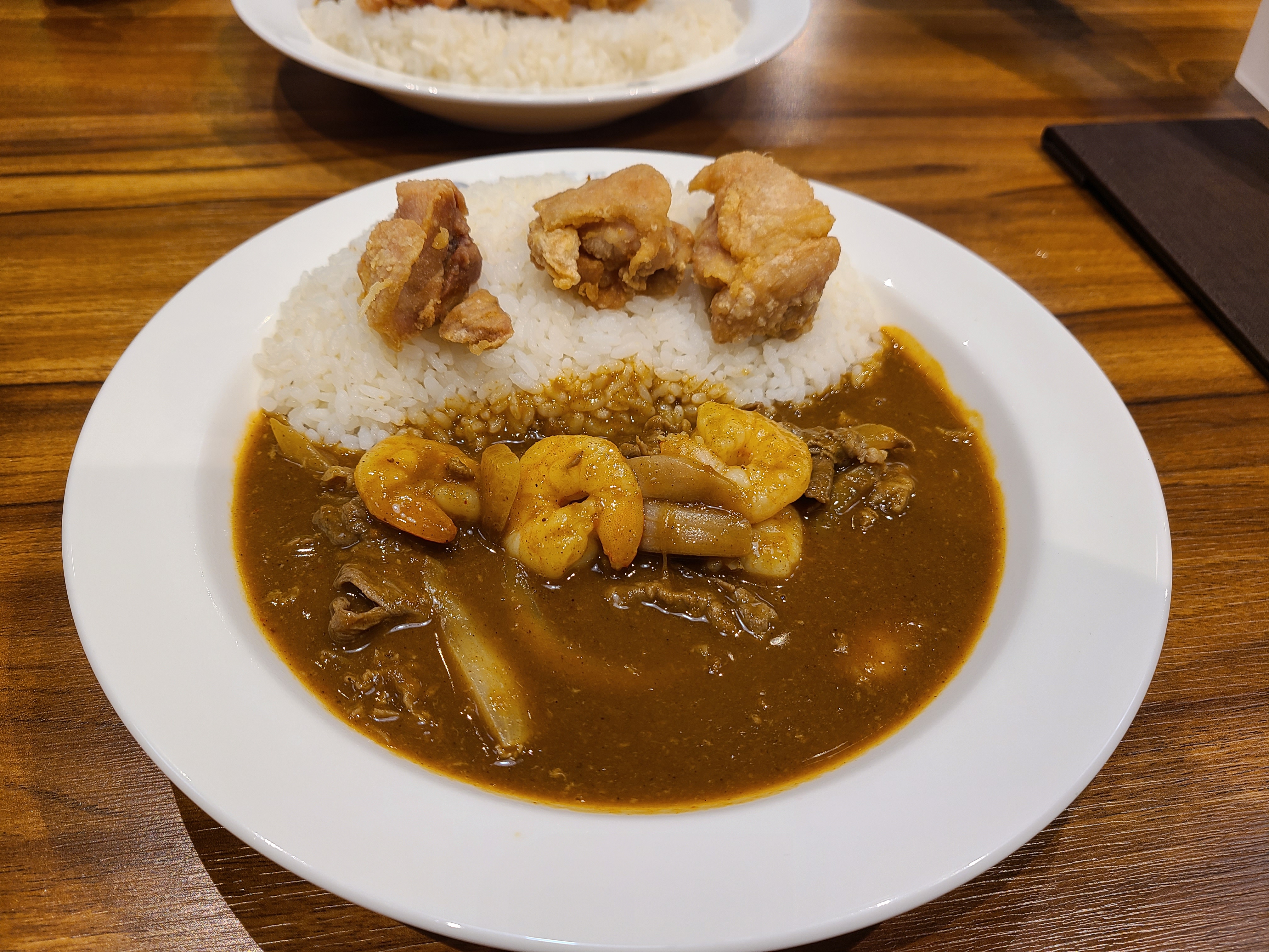 4. 가라아게 3개 + 4알새우비프샤브카래로 주문했습니다. 카레 자체가 엄청 진하고 맛있어요. 맵기도 조절가능합니다. 약간 매콥한게 맛있지요 ㅎㅎ