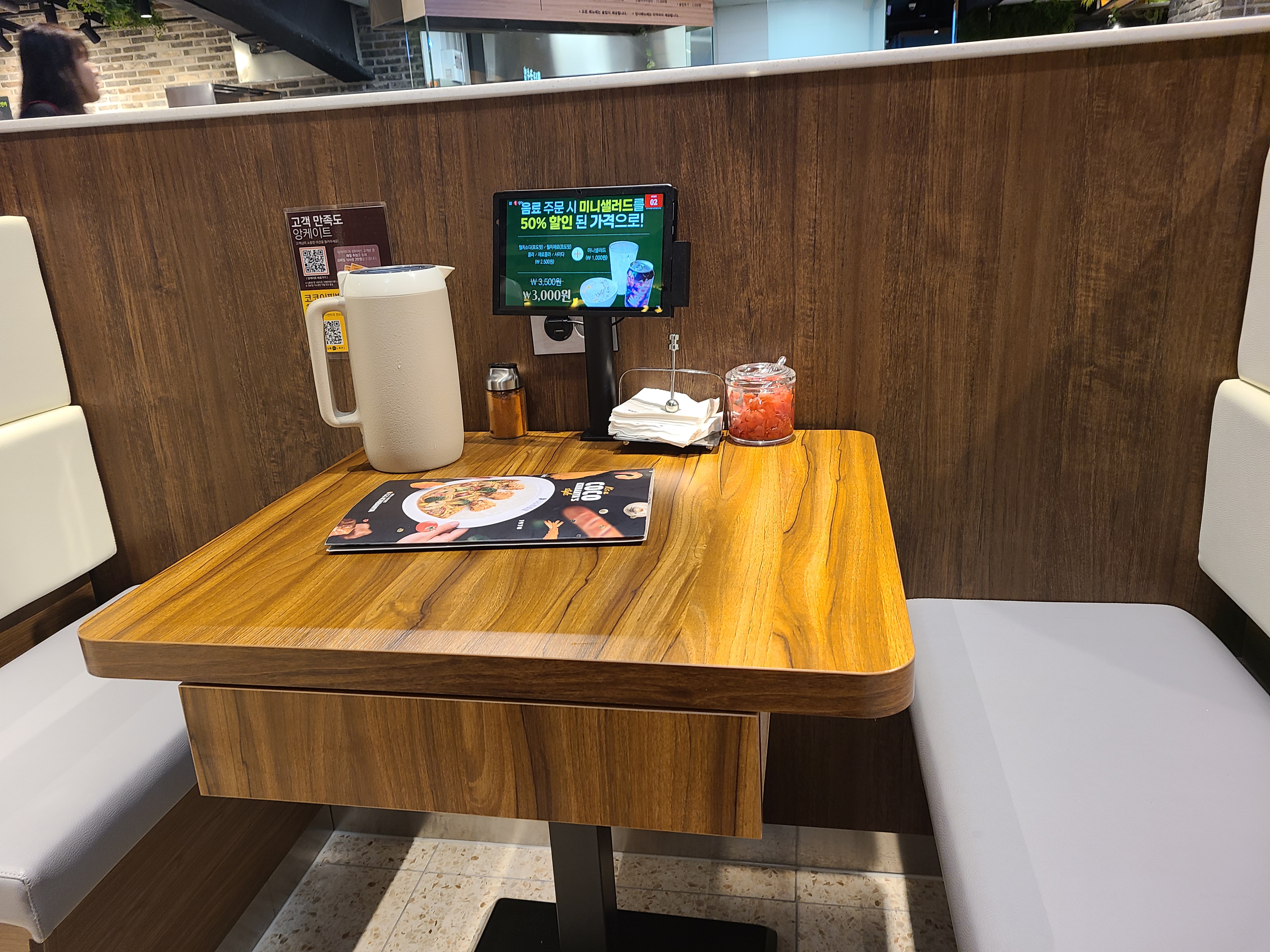 3. 테이블마다 놓여져있는 키오스크에서 간편 주문이 가능합니다. 하지만 제가 앉았던 자리는....터치가 잘 안되서 종업원 불러서 주문했어요.