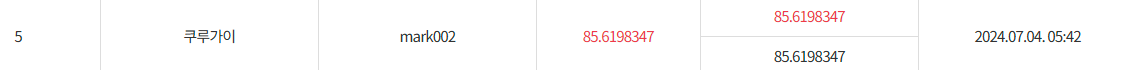 2. train 데이터셋 / 5eq 학습한 mark002를 제출했는데 역시 학습량이 많다보니 mark001보다 15점 오른 85.6점을 기록했습니다. 1등이 92.8인데...갭이 꽤 있습니다. 에폭수를 늘린다고해서 점수가 더 좋아질거 같진 않은데 1등은 어떤 마법을 부린걸까요.ㅠㅠ