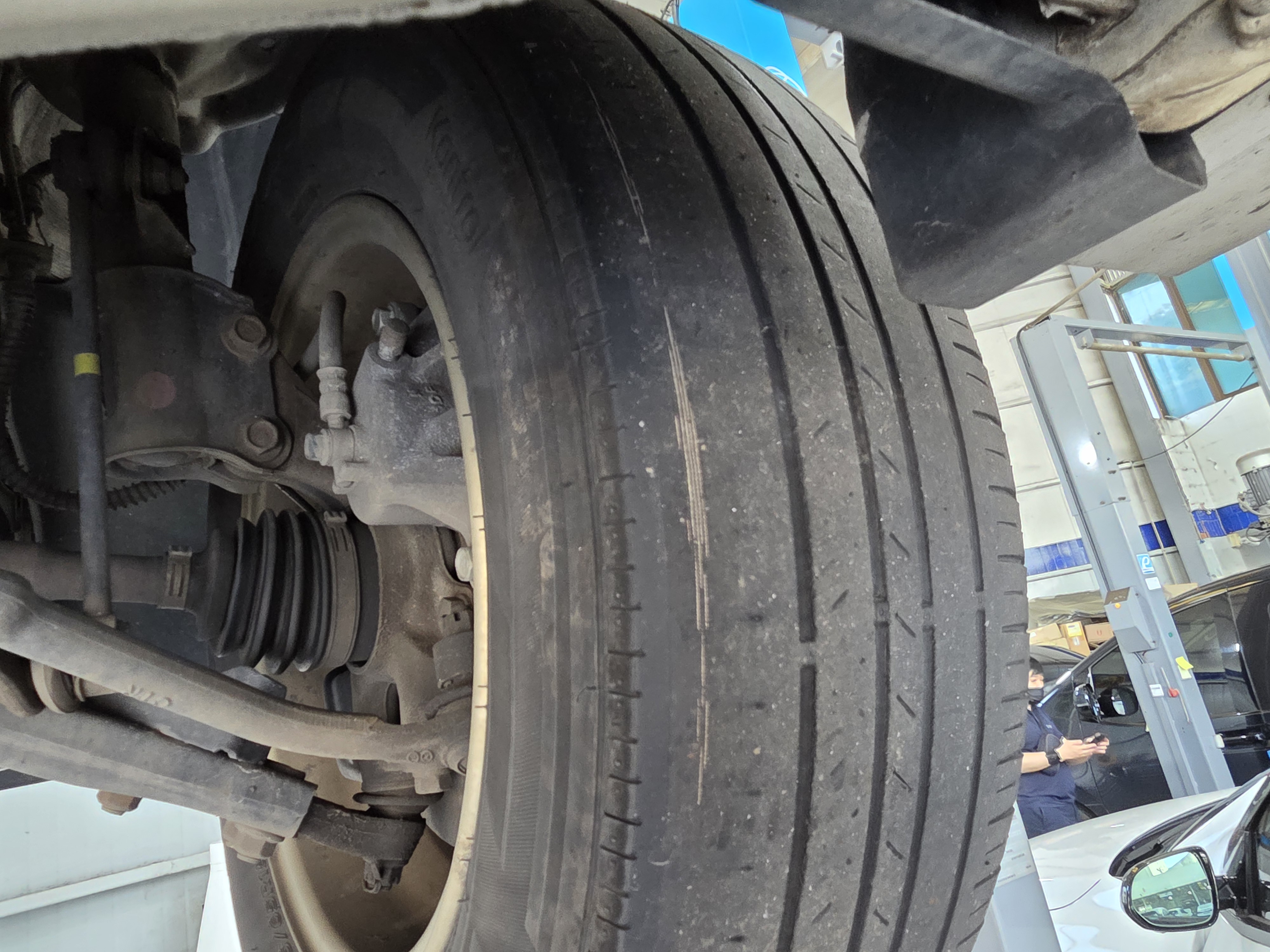 12. 타이어 쪽 실밥도 나와있음. 타이어는 바로 갈아야함.